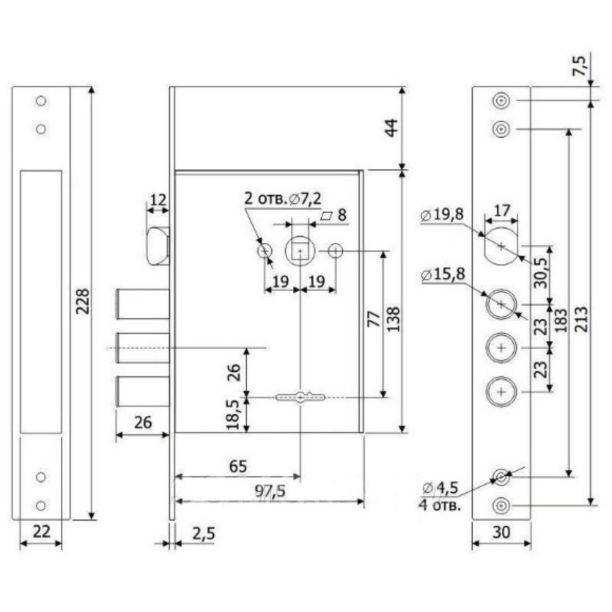 Замок врізний сувальний Kale 442 L, 5 ключів, хром, без відповідної планки