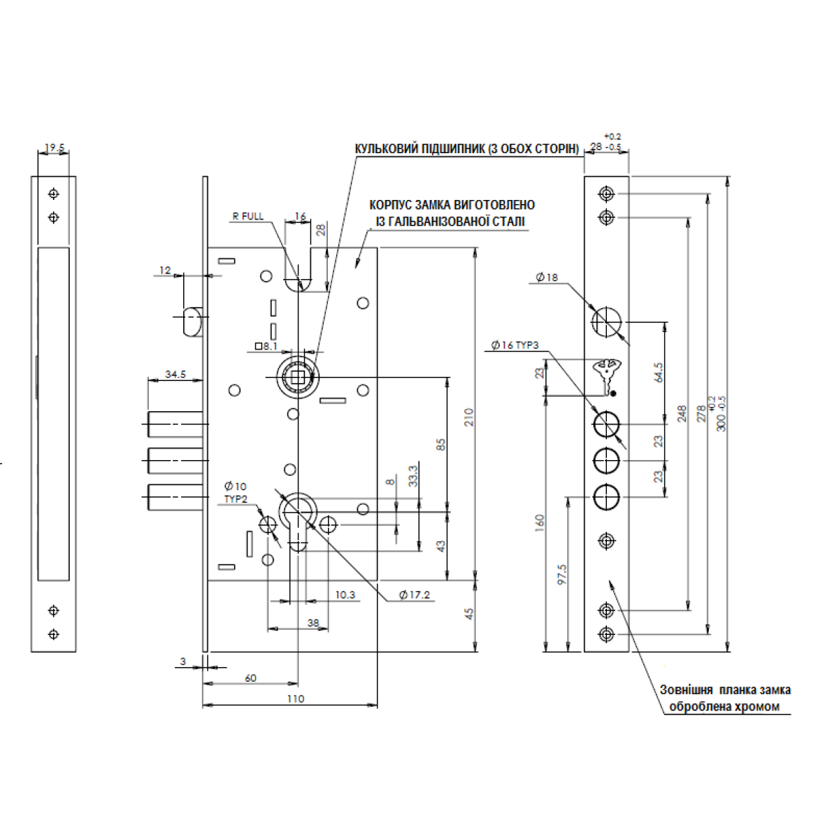 Замок дверний врізний MUL-T-LOCK 1-WAY DIN 354M NC UNIV ВЅ60мм 85мм SP