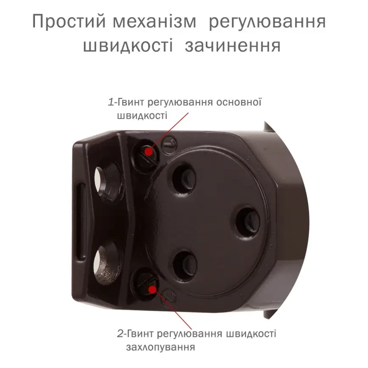 Передбачене регулювання початкової та кінцевої швидкості закривання.