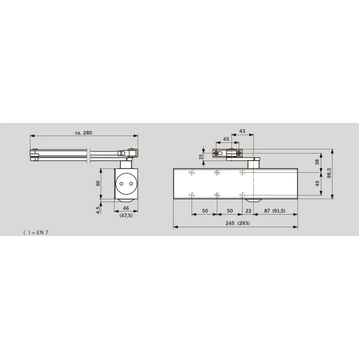 Дотягувач дверний Dorma TS-83, EN 3-6, зі складною тягою, білий