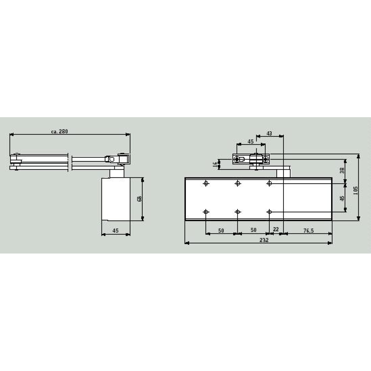 Доводчик TS-71 застосовується для будь-якого типу дверей. Монтується без монтажної пластини.
