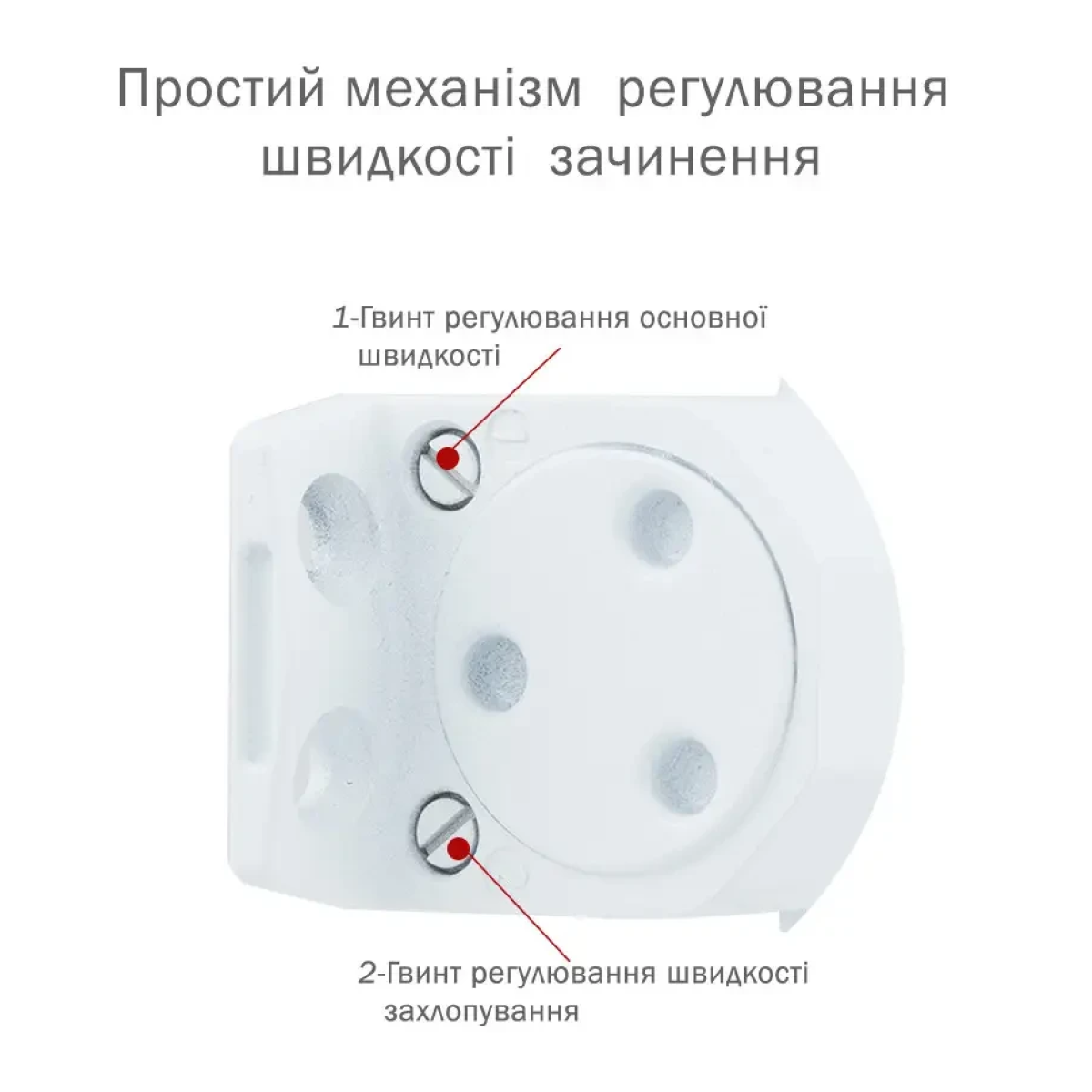Регулювання класу дотягувача відбувається шляхом переміщення дотягувача по дверному полотну, див. монтажний шаблон який входить в комплектацію з дотягувачем.