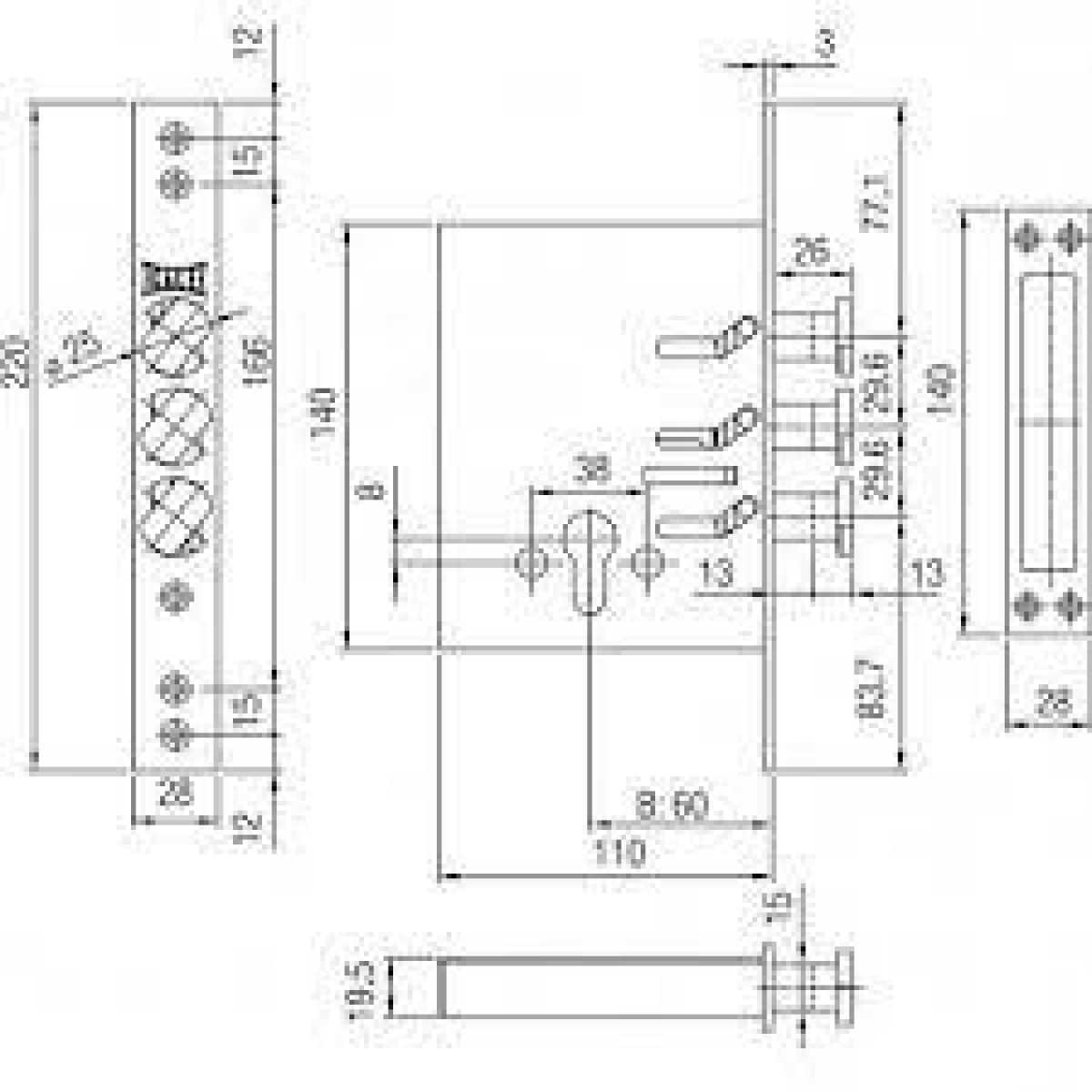 Замок врізний Kale 287 D з відповідною планкою, бексет 60мм (без циліндра)