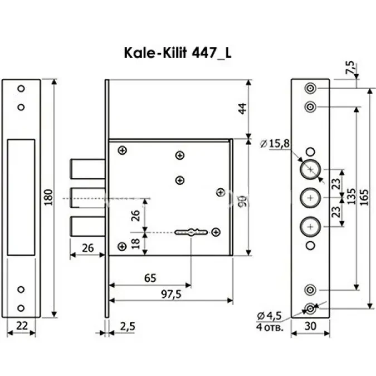 Замок врізний сувальдний Kale 447L, 5 ключів, бексет 65мм, без відповідної планки