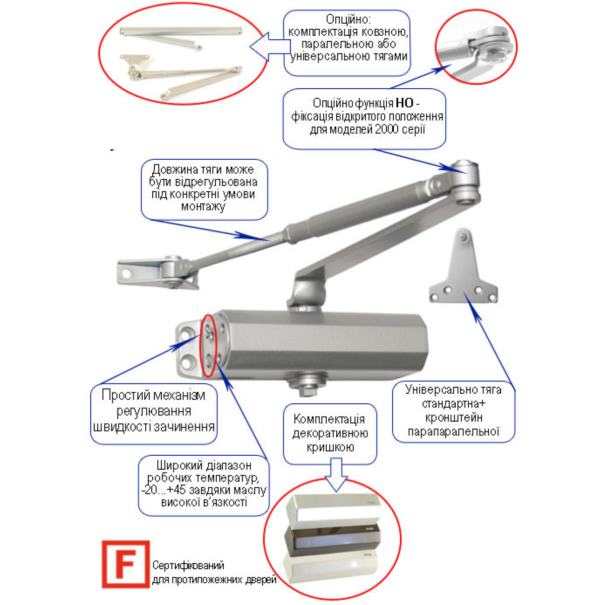 Доводчик RYOBI (Ріобі) D-1554 EN2/3/4 UNIV, колір темно-бронзовий (з кришкою)