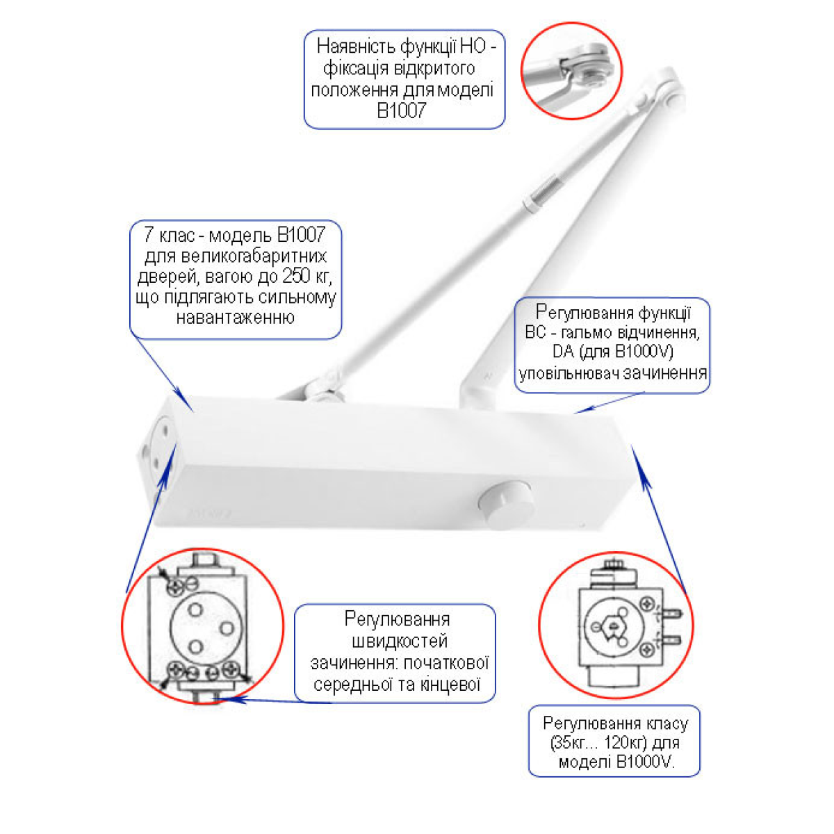 Доводчик RYOBI (Ріобі) B1006 EN6 BC STD, колір білий