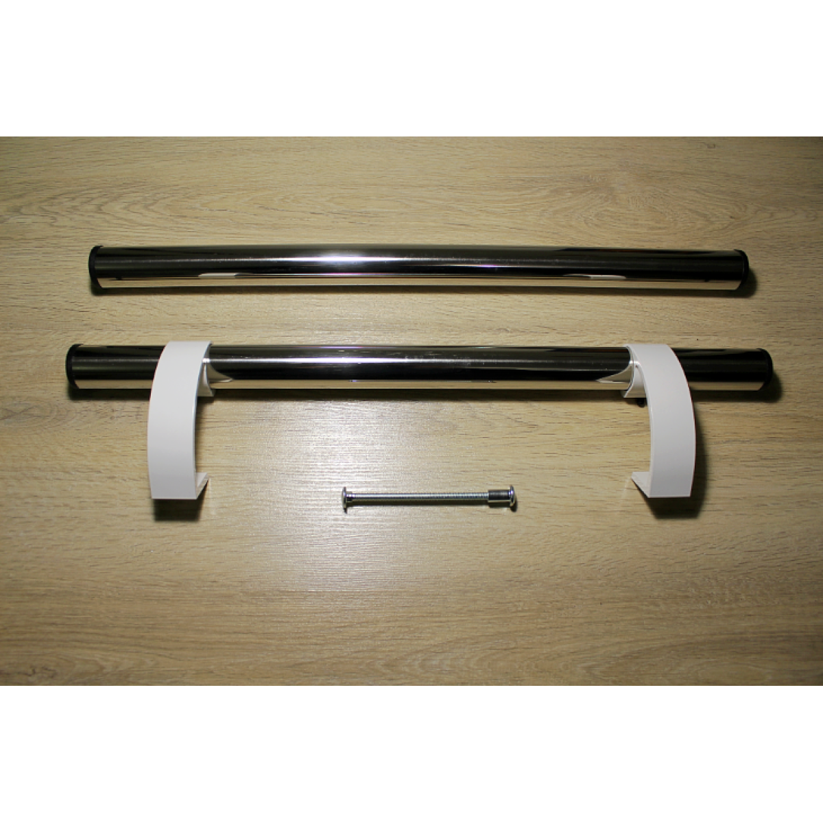 Ручка офісна дверна “Труба“ нержавійка + білий кронштейн, 500мм, комплект