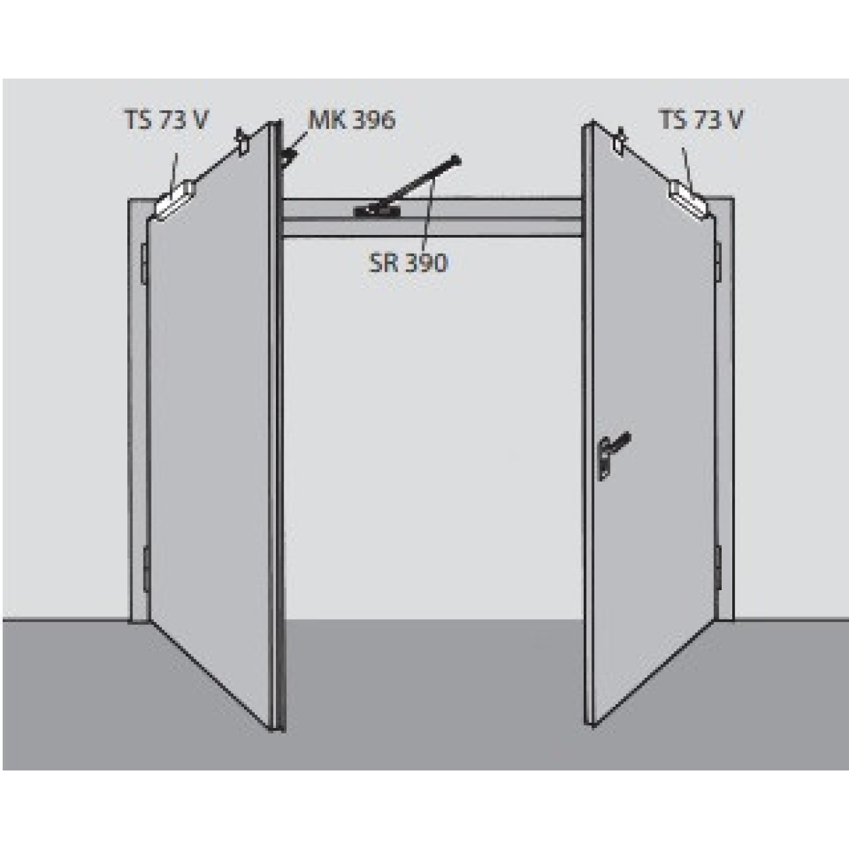 Результат порядку закривання стулок DORMA SR390 для сталевих, алюмінієвих і ПВХ дверей.